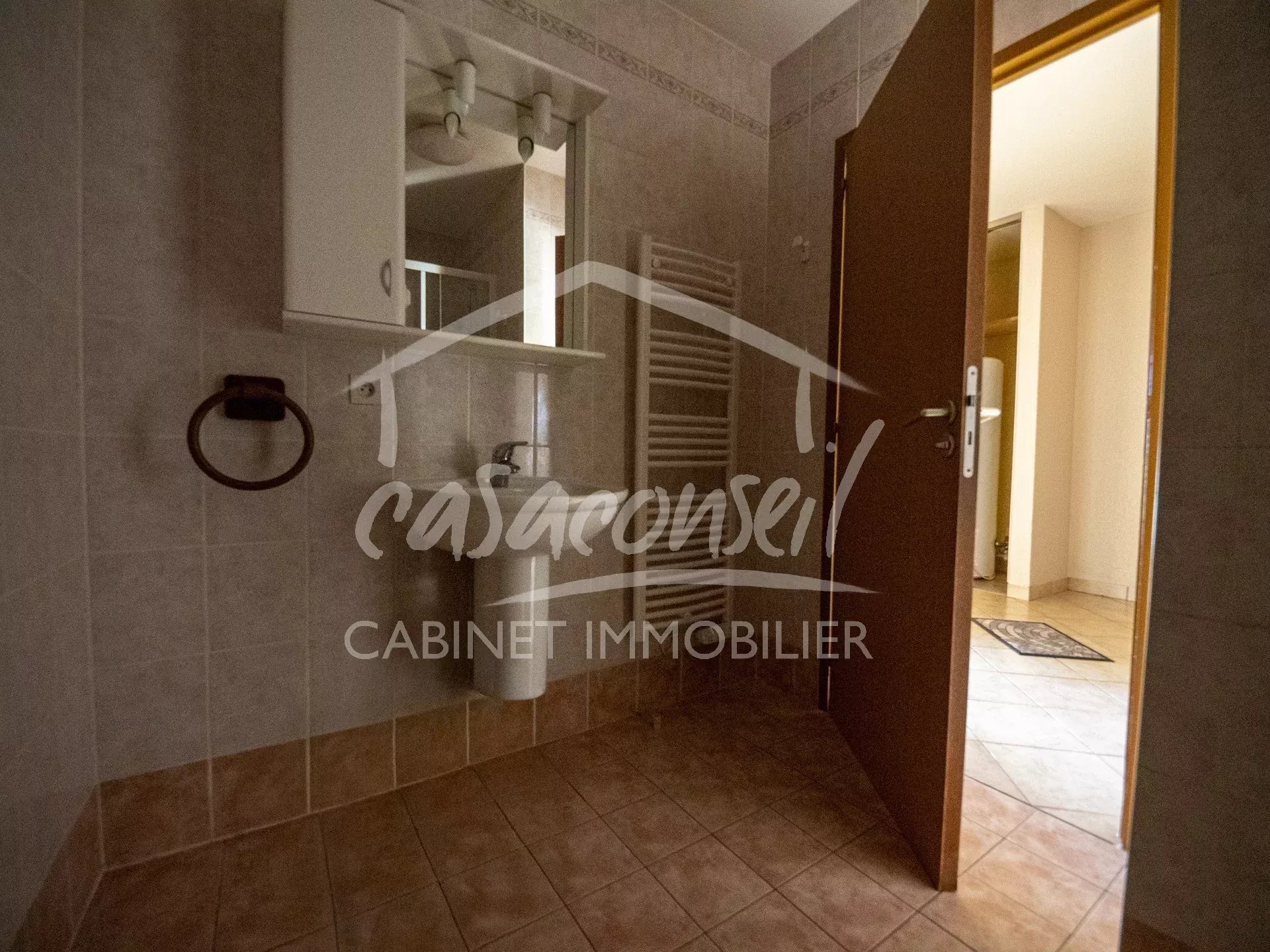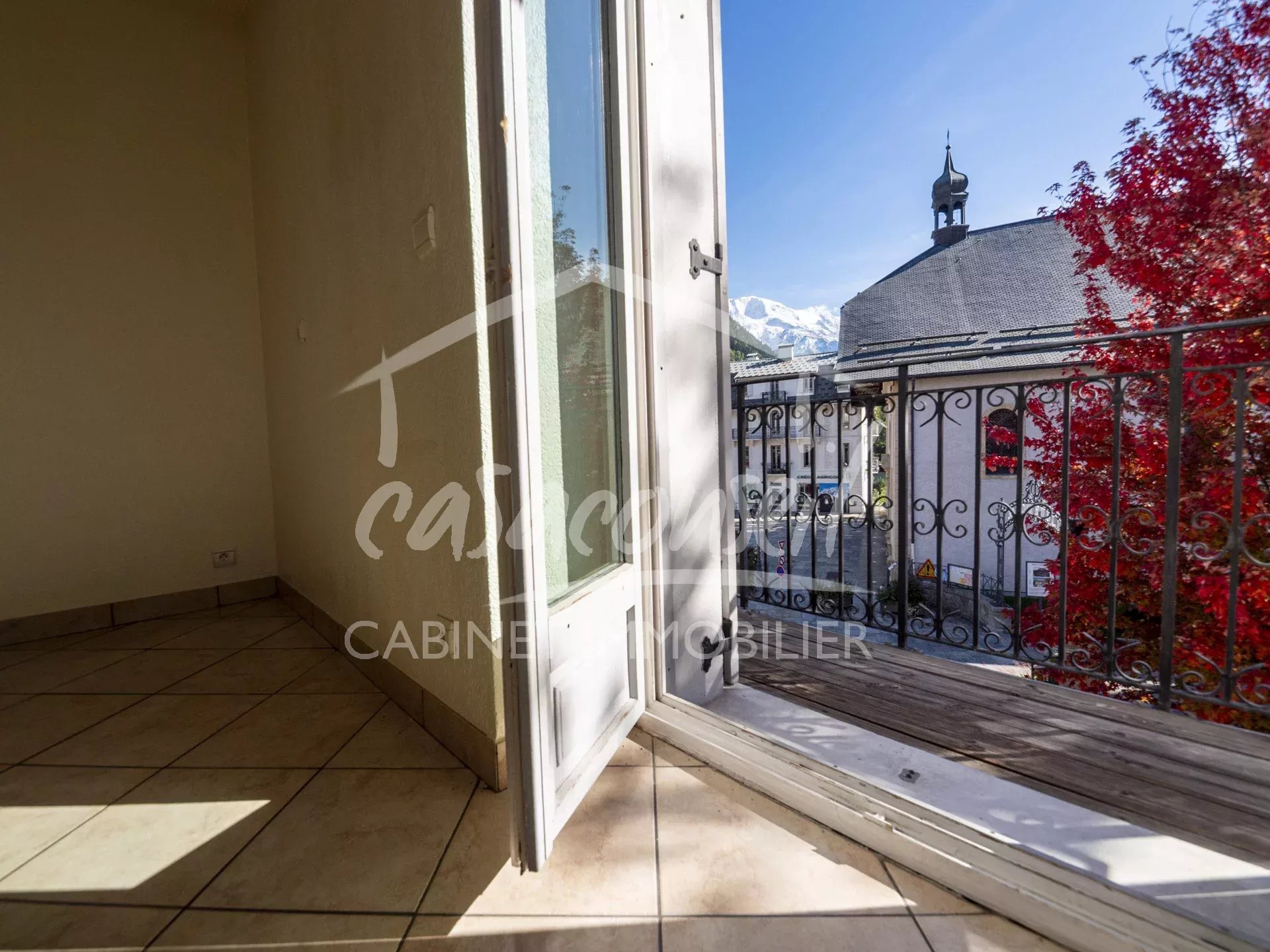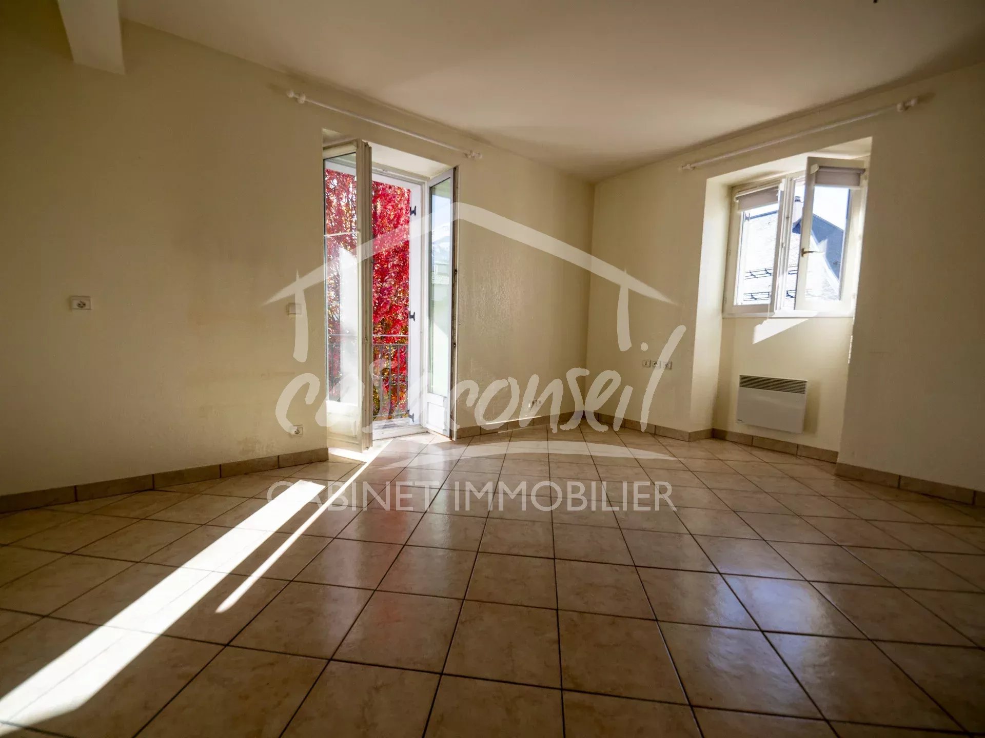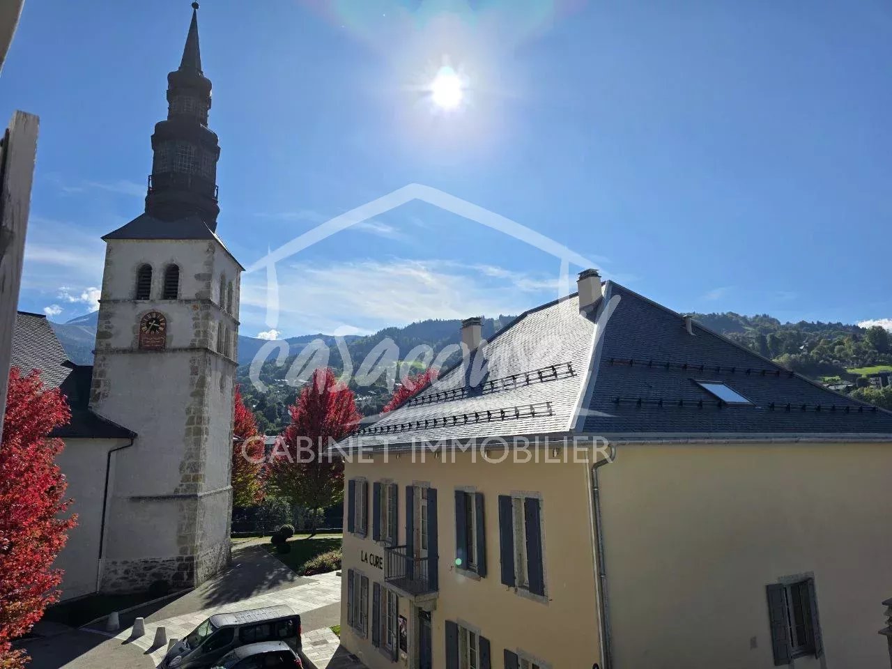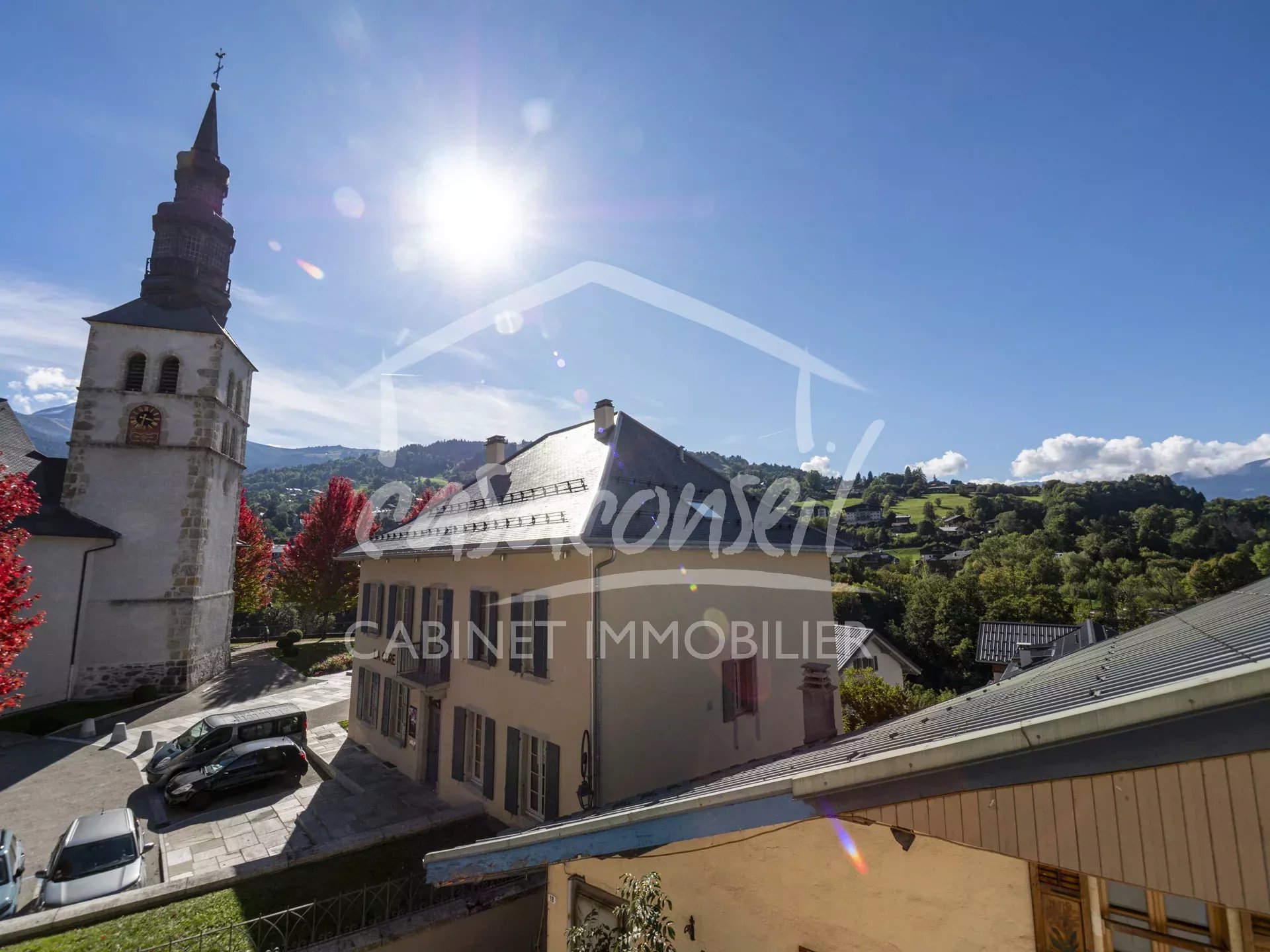 En plein cœur du village, au deuxième étage d'un bâtiment avec ascenseur, appartement comprenant large hall d'entrée, 2 chambres exposées Ouest, salle de bains avec toilettes, beau séjour avec balcon S/E.